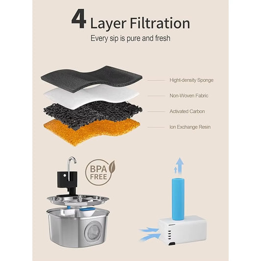 3.2L Wireless Stainless Steel Automatic Pet Water Dispenser with Viewing Window for Cats and Dogs